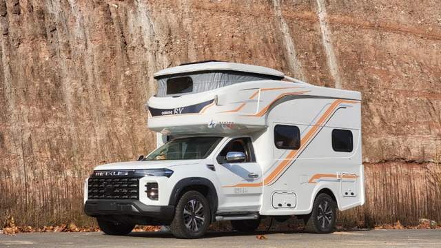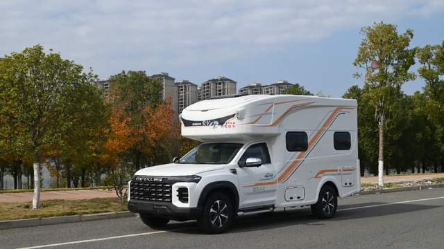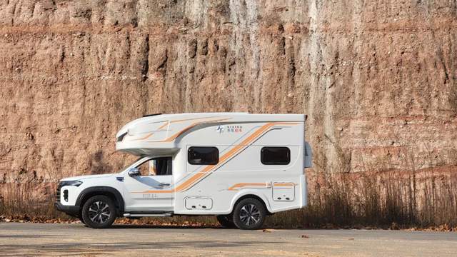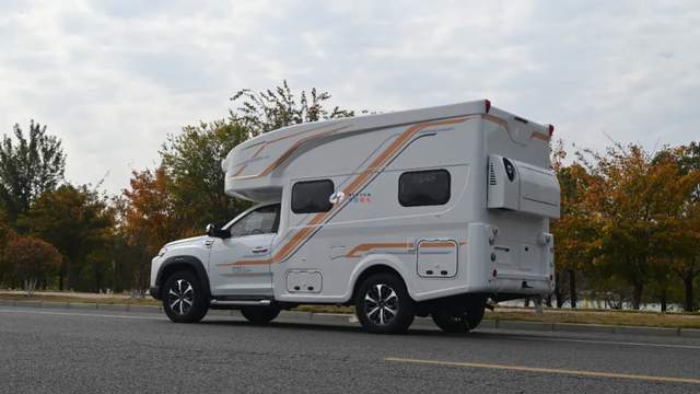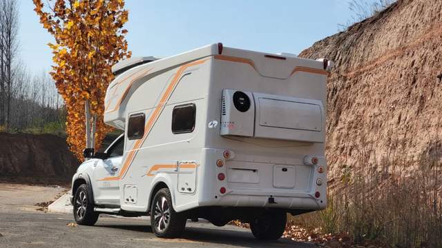 外觀簡(jiǎn)約白大氣典雅,搭配橙、銀雙色個(gè)性線條拉花時(shí)尚動(dòng)感,外觀尺寸5995*2110*2730mm,軸距為3470mm,戶外遮陽(yáng)棚+戶外LED照明、戶外柴油灶、水口、充電口及外部工具艙、尾部?jī)?chǔ)物倉(cāng),駕駛區(qū)一體式踏步與房車區(qū)隱藏式上車踏步、打開(kāi)遮陽(yáng)棚后配上戶外座椅可滿足家人朋友團(tuán)聚野餐休閑。
