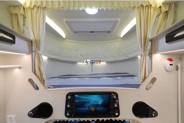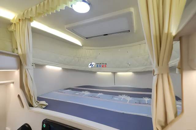 采用齊星特有的局部額頭升頂,行車小額頭更小風(fēng)阻重心、升頂更大額頭床空間,讓額頭床空間寬敞。床鋪尺寸可達(dá)1400*1900mm,額頭床配有頂部天窗、保溫篷布前方也有一個(gè)拉鏈?zhǔn)降牟晒獯?,床?cè)貼心的安裝了五孔插座和獨(dú)立的隱私簾,讓額頭床睡眠空間更加舒適私密。